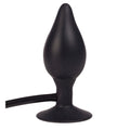 A pliable and durable silicone inflatable plug with superior suction cup base an easy squeeze bulb and quick air release valve. 4.5 inches by 1.5 inches before inflating, doubles in width once inflated.