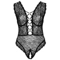 Crotchless body made out of soft stretchy lace. With underwired cups. Crotchless. Stretchy for a comfortable fit. Wonderful lace for sensual curves! The crotchless body from Cottelli CURVES is entirely made out of delicate lace and rose-gold coloured details. It has a low-cut cleavage area and underwired cups. The cleavage area and the v-shaped back are decorated with stretchy straps. The tight-fitting, crotchless body is wonderfully stretchy and soft for a comfortable fit. The wide straps can be adjusted for a perfect fit. 90% nylon, 10% spandex.