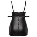 Set with a short dress and 2 handcuffs Captivating bondage look Tight, luxurious matte look Cups with zippers Adjustable straps Rings in the back for the cuffs Soft handcuffs with carabiner chains Soft and elastic, for a high wearing comfort Captivating matte look! Short dress and 2 handcuffs in a set by Cottelli BONDAGE PLUS. Tight elastic dress in a fitted cut. Noble black matte looks all around with silver-coloured metal details. Front and sides in a captivating bondage look with straps and rings. Cups with small zips to open. Two adjustable straps over the cups, straps are also adjustable. A strap is attached at the back with 3 rings placed at different heights, into which the two enclosed handcuffs can be hooked using carabiner chains. With their adjustable hook and loop fasteners, the cuffs are quickly put on for hot fixations. 90% polyester, 10% spandex.