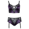 Bralette and crotchless suspender briefs. A beautiful mixture of satin and lace. Stretchy criss-cross straps over the cleavage. Briefs are invitingly open in the crotch area. Removable suspender straps. Stretchy for a comfortable fit. A beautiful seductive outfit made out of satin and lace! The bralette and crotchless suspender briefs in a set from Cottelli CURVES are made out of a beautiful mixture of purple satin and delicate black lace. The bralette stands out because of its stretchy criss-cross straps over the cleavage and the high-waist briefs stand out because they are invitingly open in the crotch area. The wide stretchy bra straps can be adjusted. The suspender straps on the briefs can be adjusted and removed. Stockings not included. 90% polyamide, 10% spandex.
