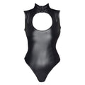 Body from Cottelli made out of stretchy matte look material that fits like a second skin. It is in a string design at the back and has high legs. There are also press studs in the crotch area. There is a large cut-out in the cleavage area. The stand-up collar has a hook fastener at the front.