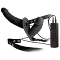 Just strap it on and have fun! A black strap-on vibrator with a large external vibrator and a small internal vibrator. The large external vibrator is 17 cm long, 3-4.3 cm in diameter, it is slightly curved and can be used to penetrate the passive partner.