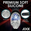 With the spinning, thrusting, vibrating masturbator from JOCK, youll never want to use any other toy again! Featuring a clear, TPE sleeve with a tantalizing, mouth-shaped opening, this device is textured with small nubs designed to caress and stimulate with each stroke. Enhance your solo sessions with 9 modes of spinning and thrusting, complemented by powerful vibrations available in 3 speeds and 6 patterns. Crafted from quality, body-safe materials that are latex-free and phthalate-free, this toy ensures safety and comfort. Conveniently rechargeable via the included USB cable, its also splashproof with an IPX5 rating, making it perfect for wet play, though not suitable for the shower. Elevate your pleasure game now! You take the toy in your free hand, squirt lube into the mouth of it, then turn it on. You slide your shaft into the gaping mouth and immediately feel the overwhelmingly stimulating sensations! It thrusts along your shaft, doing the work your hand normally does. It spins around you and vibrates, and as you move your own rod to explore different angles, you find yourself getting closer and closer to climax with each moment! Curve Toys is known for its proprietary formulas used to create the best dildos and adult toys in the world. They manufacture adult replica products with only body-friendly, phthalate-free, and top-grade materials. All products are inspected for superior functionality so that they represent the value, quality, and innovation from the factory to the bedroom. Staffed by experts with over 60 cumulative years in adult manufacturing, Curve Toys is the perfect combination of passion, creativity, and experience in short, we know pleasure. Measurements Overall length 10.1 inches - 10.8 inches (fully extended) Overall width 2.7 inches Insertion length 3.7 inches Materials Masturbator TPE Case ABS plastic, silicone Note Use only with water-based lubricants. Key Features Fantasy Mouth Shape This clear, TPE sleeve has a large, mouth-shaped opening and is textured with small nubs that grab and massage the shaft with each stroke. Spinning and Thrusting Blow your mind with 9 modes of spinning and thrusting! Vibration Indulge in power vibrations and choose between 3 speeds and 6 patterns. Body-Safe Made from quality, latex-free, phthalate-free materials. Rechargeable and Splashproof Rated IPX5 waterproof so it can handle getting wet, but not taken in the shower. Recharge with the USB cable provided.
