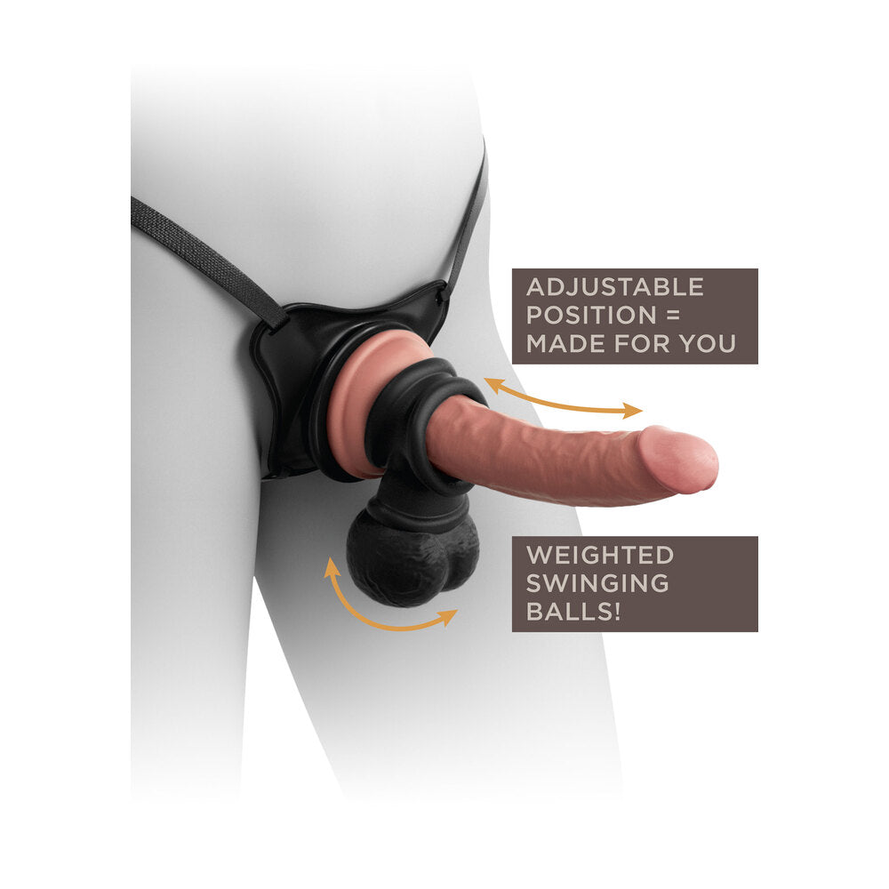 Get ready to have a ball with The Crown Jewels! These dual-density swinging balls by King Cock Elite feature silky soft Elite Silicone on the outside, firm silicone balls on the inside, and a super stretchy c-ring that works great with most dildos, vibrators, and even cocks! Using the swinging Crown Jewels as a c-ring adds a new level of ball-slapping fun to your love life. These swinging balls are a must-have for any royal collection!