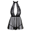 Short, flared babydoll from kissable made of beautiful, transparent, black lace and delicate powernet. It is velvety soft and stretchy for a comfortable fit. The backless babydoll has a large cut-out in the cleavage area. The satin collar can be tied together at the back of the neck, the satin waist strap can be tied together at the back. The matching small string is included. Babydoll and string in an exclusive set Lace and powernet in a delicate mix of materials Large cut-out at the front Open back satin collar that can be tied together The satin waist strap can be tied together at the back Soft and stretchy for a comfortable fit Elegant seduction in an exclusive style! Powernet 95% polyester, 5% spandex lace 90% polyamide, 10% spandex.