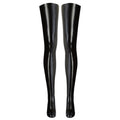 Latex Black Stockings. Skinny, thigh high, dipped latex stockings in black. Without shoes.
