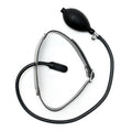 Genuine leather gag with inflatable balloon and pump, adjustable with buckle.