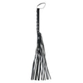Genuine leather whip with 18 strings, Handle 12 x 1.1 inches, Strings 26 Inches long.