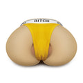 This masturbator is made of realistic, skin-friendly material which mimics the human body and provides an extremely realistic experience. The designed vaginal tunnel has a nest of nubs which are clearly noticeable when inserting the penis. Included is a bitch thong with a full cheek exposure design that can be removed from the masturbator as well. We advise using plenty of lube to ensure a smooth entry. The diameter of the holes in the masturbator might seem tight for the first time, but the elasticity will increase over time. Insertable depth vagina tunnel 11.94 cm Insertable depth anus tunnel 12.95 cm