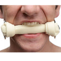 This inhibiting bone gag will help you train and control your pet comfortably. Made of premium silicone, this semi realistic dog bone gag consists of two adjustable 12 inch silicone straps that are connected to the bone by a metal ring at each end. The bone colored gag measures 6 inches in length and 1 inch thick, giving them a good size bit to bite on while in training. The back as a rolled buckle which allows you to lock the gag in place with the addition of a small padlock. Explore the many dimensions of puppy play with this devious bone gag from the Kanine Collection from Master Series. Measurements 25 inches in total length, gag measures 6 inches in length and 1 inch in diameter Material Silicone, metal.