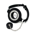 Latex Play black silicone mouth gag with removable sink stopper. Adjustable head strap with a buckle.