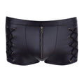Distinctive matte look! Delicate, black pants with an underlaid brass zipper in the front. With prominent lacings on the sides. Tight-fitting, elastic fit for ideal wearing comfort.