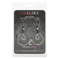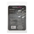 Includes 2 fully adjustable nipple adornments. Soft and comfortable cinch design. Sturdy high-quality chain for added sensuality. Non-piercing, non-tarnishing, nickel-free. Nickel-Free Iron, chain, beads. Silicone, loops. Crystal, jewels.