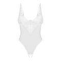 A timeless classic! The Alissium crotchless body from Obsessive is in an elegant colour, beautiful and timeless white. It is soft and stretchy and has a delicate lace look. There is a discreet decorative detail between the wireless lace cups. The bra straps can be adjusted to fit. It has a very high-leg design and it is seductively crotchless as well. 94% polyamide, 6% spandex.