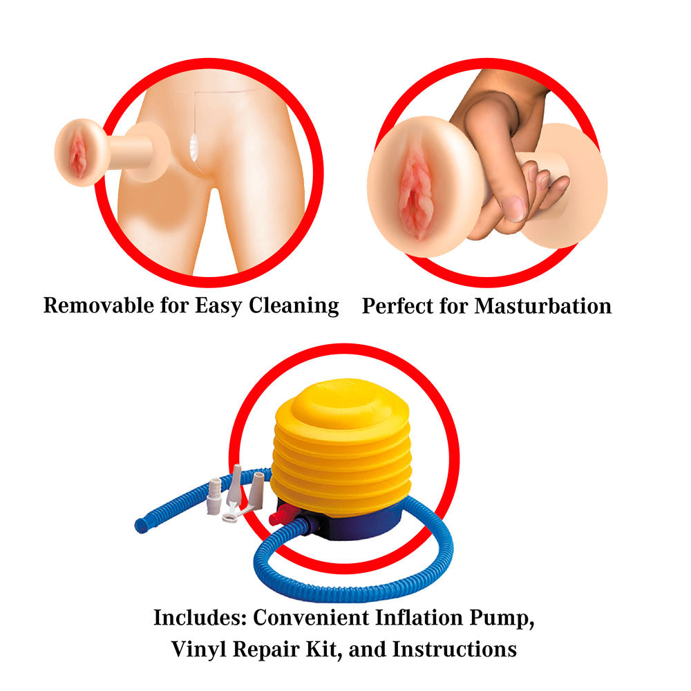 Wanna see whats hiding under this pretty pink bikini? How bout a pair of perfectly round breasts, perky hard nipples, and a pussy and ass so soft theyre just begging for you to come inside! Take me for a test drive and feel what its like to experience a real British sex machine. Im all yours to explore and do as you like. Every inch of ME! xoxo Hannah This incredible life-size inflatable love doll was meticulously designed with realistic features for a truly lifelike experience. Her sexy 3-D formed head features realistic eyelashes and a luxurious head of real hair thats begging to be pulled! Watch her really come to life with arms that swivel 360 degrees and delightfully painted finger and toenails. Give her firm and perky breasts a squeeze while you enjoy her ultra-lifelike Fanta-Flesh skin, pussy, and an ass that feels even better than the real thing! The Fanta-Flesh pussy and ass are removable for easy in-depth cleaning, and can even be enjoyed separately for masturbation. An inflation pump, vinyl repair kit, and instructions are conveniently included. How to Inflate DO NOT OVER INFLATE. To avoid over-inflation, do not use an electric compressor. Instead, use the included manual pump to blow the doll up to 90 percent capacity. Let it rest for ten minutes so the air can evenly distribute within the doll before inflating completely. The less air inside the doll, the less strain will be placed on it during use. Cleaning Instructions. To clean the Fanta Flesh piece, remove it and clean separately from the doll. Rinse the Fanta Flesh in warm water, then scrub with toy cleaner both internally and externally using your hands or a soft cloth. Rinse with warm water, then pat dry with a lint-free cloth. Sprinkle internally and externally with Fanta Flesh Revive powder to dry excess moisture and help maintain the materials softness. To clean the doll, rinse with warm water, then gently scrub with toy cleaner using your hands or a soft cloth. Avoid using rough cloths or sponges, as this could damage the material. After scrubbing, rinse again with warm water. Pat dry with a lint-free towel. Storage Instructions Deflate the doll, then carefully fold it before loosely wrapping it in a lint-free cloth. Store in a cool, dry place away from direct sunlight, like a trunk or closet. Other Care Instructions Avoid sharp objects. Repair punctures promptly using the included repair kit and instruction sheet. Ensure the puncture is clean and dry for an airtight seal. Avoid lubes and lotions in the hair to avoid damage and tangling.