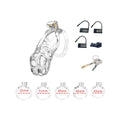 The Rimba P-Cage collection features different types of penis cages. Made from high-quality ABS material, these chastity cages offer a comfortable fit while ensuring long-lasting durability. A chastity cage restricts the wearer from having an erection. The opening at the front of each P-Cage allows the wearer to urinate without removing the cage. This penis cage set includes 5 rings in different sizes, ranging between 43 - 55 mm. In addition, it includes 1 copper built-in lock and 3 plastic numbered padlocks. The plastic locks can be cut off with scissors after a single use. Lastly, one plastic screw is included as an alternative to the copper built-in locks, which may not pass security checks at airports, whereas the plastic lock is airport-friendly. Dimensions Size XS 36 mm x 65 mm Dimensions Size S 38 mm x 85 mm Dimensions Size M 38 mm x 95 mm Dimensions Size L 38 mm x 105 mm