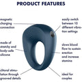 The Satisfyer Power Ring provides more stamina during lovemaking. The vibrating cock ring is pulled over the non-erect penis, which grows to a new size when erect thanks to the restricted blood flow. The cock ring stimulates both partners with 10 vibration programs that can be controlled intuitively with a button. Its flexible and fits perfectly and excitingly close to your penis. The ring gives you a firmer erection and more stamina because of the restricted blood flow while also delaying ejaculation. The cock ring pleases both partners with its powerful vibrations. Thanks to its stimulating texture, the Power Ring also provides clitoral stimulation with its ribbed details. The waterproof finish also means the Power Ring is an ideal playmate for fun in the shower or bathtub. In addition, the body-friendly, soft silicone is particularly hygienic and inspires you both with its comfortable feel the material can be easily cleaned with a sexual wellness device cleaner before and after each use. Should your Power Ring ever run out of steam, the integrated batteries can be recharged with the included USB charging cable.