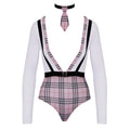 The schoolgirl costume from Cottelli COSTUMES consists of a long-sleeved body and a necktie collar. A fine mix of opaque checkered fabric and transparent white powernet. Soft and elastic all around for great comfort. Extra low-cut body with stretch bands at the front in a suspender look and an attached belt at the front with a beautiful clasp. Collar with small checkered tie and clasp at the neck. 90% polyester, 10% spandex, powernet 90% polyamide, 10% spandex. Long-sleeved body and collar tie in a set Delicate mix of materials Low-cut bodysuit Suspender straps attached to the front Belt with a beautiful buckle attached to the front Collar with a closure at the neck Soft and stretchy for high comfort In the classic checked look!