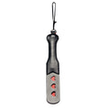 A special heart-filled spanking paddle with a split surface, With a flick of the wrist, create spanks that deliver audible impact without too much force. Great for beginners who love to hear the sound of spanking, but arent quite ready for those full-throttle whacks yet. Leaves a great impression of hearts behind. Product Specifications Made of quality vegan leather this slapper will leave hearts wherever you go. Split leather paddle for extra-loud spanks The dual-layered spanking surface creates a satisfyingly loud slap Rigid handle with wrist loop for a confident grip Perfect for those who want audible impact without hard spanking Ingredients 85% polyurethane, 10% fibreglass, 5% nickel-free metal 1- 12.5 inch paddle, 2.5 inches wide