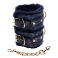 Embrace the allure of playful restraint with the Cougar Fur Handcuffs. Luxuriously lined with a rich blue faux fur and accented with gleaming gold hardware, these handcuffs are designed for sophisticated seduction. Ideal for adventurous play, they offer both comfort and style, ensuring your intimate moments are unforgettable. Faux fur inner-lined cuffs with faux leather Nickel-free gold-plated hardware with 5.5 inches, 13,9 cm chain 9 inches, 22,8 cm cuffs with an adjustable buckle Colours navy, gold Materials 50% polyurethane, 30% polyester, 15% iron, 5% zinc alloy