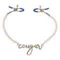 Dare to bare it all and add a touch of thrill to your play with the Cougar Nipple Clamps. These elegant clamps feature a luxurious gold chain with the word Cougar written in cursive between them, embodying both style and playfulness. Featuring adjustable tension, these clamps are perfect for exploring new sensations. The sultry blue hue adds a fierce edge, ensuring every moment is as stylish as it is stimulating. Dual-sided adjustable tension rubber-tipped nipple clamps Enticing cursive lettering spelling cougar Length 16.5 inches, 41,9 cm Colours gold, blue Materials 60% zinc alloy, 35% iron, 5% phthalate-free PVC