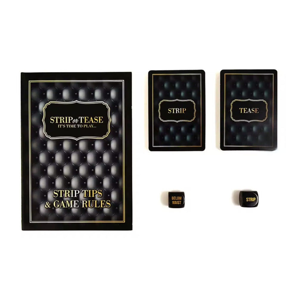 Unleash the inner God and Goddess in each other with the erotically charged game of Strip or tease. With a booklet to show him and her the art of Stripping and Teasing, how to set the scene, the right music, clothing, lighting etc Strip or Tease will help you perfect the art of undressing erotically and sexily, tantalising each other with thoughts of what may be to come. Let the game strip you of your inhibitions and tease each other with the show of a lifetime. Its time to play. Contents 2 Dice 30 Strip Cards 30 Tease Cards His and Her Strip Tips