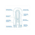 The Masturbator Original Vacuum Cup Extra Cool from Tenga is in a discreet design. This Premium version has an even more elaborate texture inside, even more, high-quality silicone and an even more flexible squeeze cup.